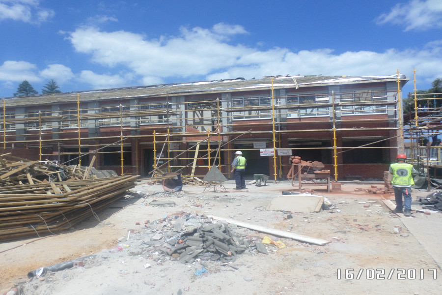 A minor issue was the De Hoop red face brick as it is easily stained and difficult to clean. Careful building methods were employed to avoid contamination but it reduced productivity initially. However, the work methods were soon adopted fully and output increased to ensure no delays. The Electrical Depot management was very pleased with their new offices and a successful project was delivered.